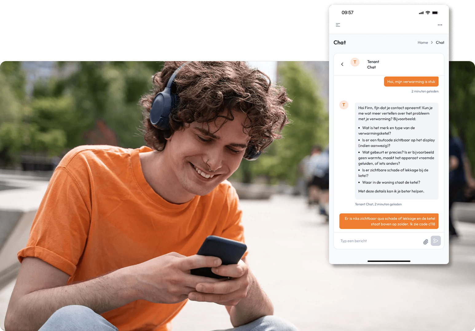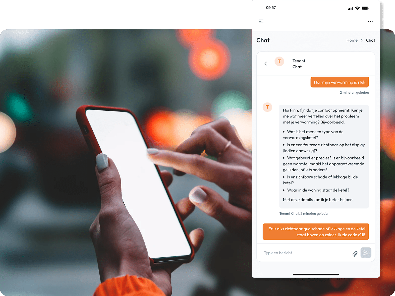 Tenant Chat is dé oplossing voor efficiënte en geautomatiseerde communicatie binnen de vastgoedsector. Onze AI-gestuurde chatbot helpt huurders snel en effectief bij het oplossen én specificeren van meldingen, bij algemene vragen over de huurwoning, en bij vragen over de huurovereenkomst, dit allemaal terwijl de vastgoedprofessionals tijd besparen en hun werkdruk verlagen!
