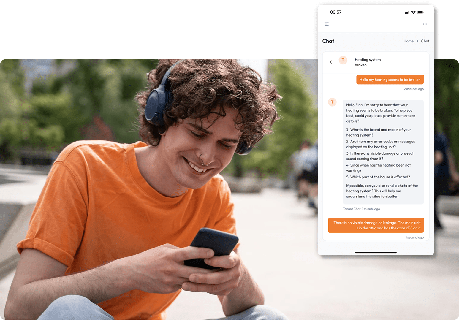 Tenant Chat can help tenants with common questions about maintenance requests and general information about the property. In addition, the chatbot can solve simple technical problems and refer to relevant resources.